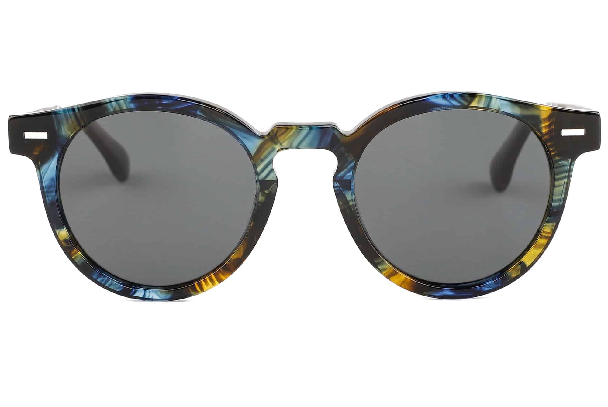Bold yet refined, the Jaques sunglasses bring modern flair to a timeless rounded silhouette. Crafted with a mixed dark acetate frame that shifts with subtle colour tones, and finished with smooth walnut wood arms, Jaques combines natural detail with contemporary style. UV400 polarised lenses deliver glare-free clarity and full UV protection, while spring hinges ensure a flexible, comfortable fit for all-day wear. Designed to suit any face shape, Jaques is a unisex essential that balances durability, comfort, and standout design.